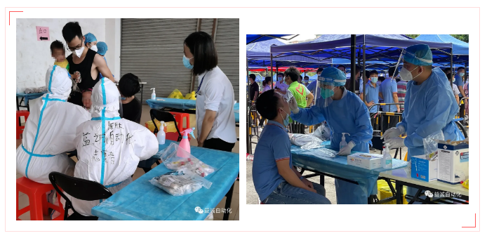 当日,东莞天气骄阳似火、烈日炎炎,室外气温高达三十多度。kaiyun开云自动化五名志愿员分两批轮班,投身抗疫一线。他们快速学习了工作要求,迅速上岗,承担了医护人员采样辅助、封瓶、包装检测试管等工作。